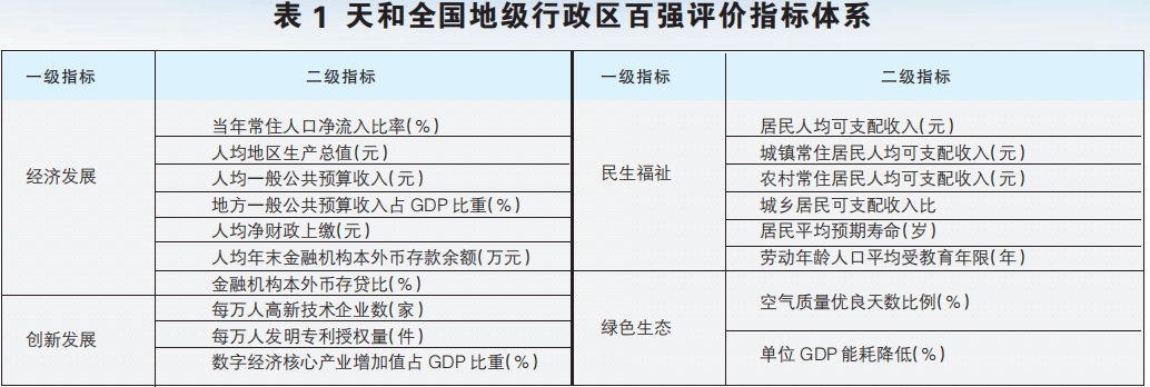 全国地级行政区百强评价采用树状评价指标体系,由4项一级指标、18项二级指标构成,详见表1。