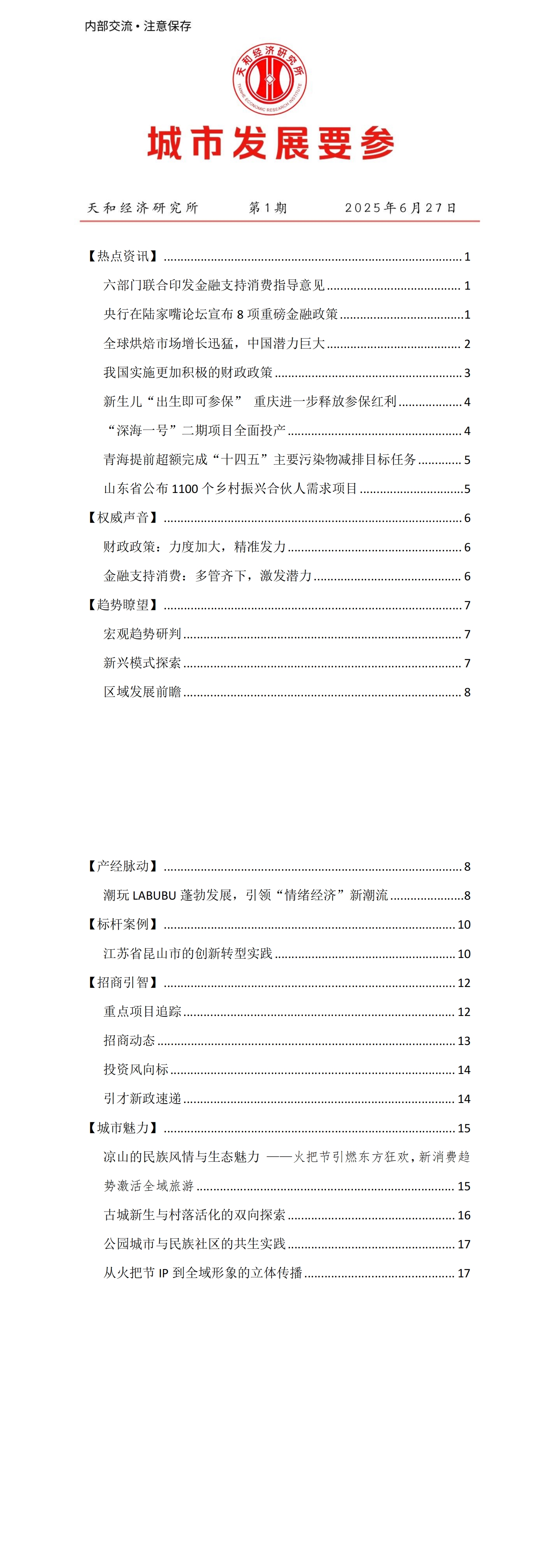 天和经济研究所《城市发展要参》第十七期