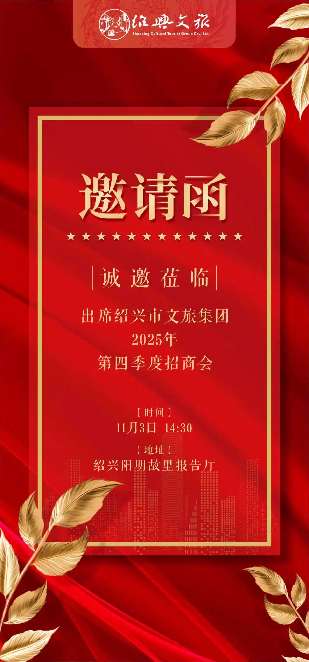 为加强集团资产资源与项目对外宣传推介力度,助推文旅产业高质量发展,市文旅集团诚挚邀请各地优秀品牌、业界精英,共赴2025年11月3日14:30于阳明故里报告厅举办的“以商带商”第四季度招商会。