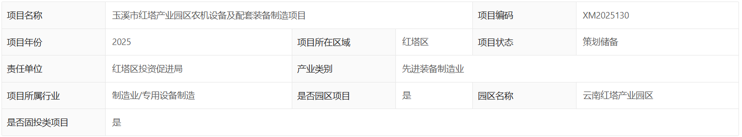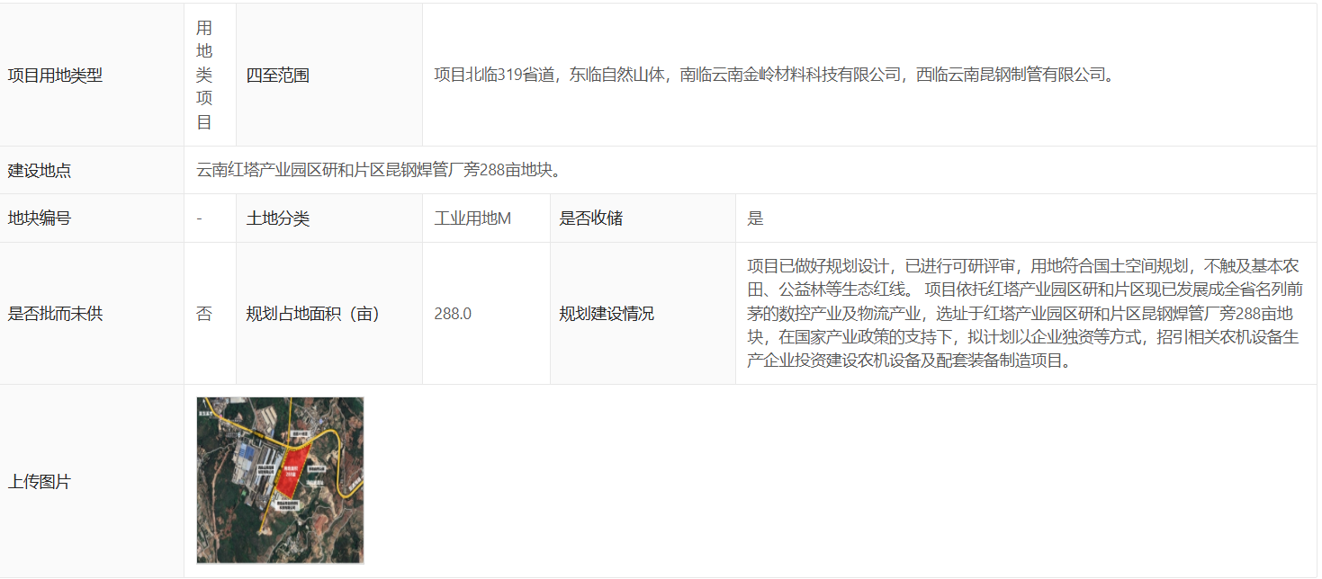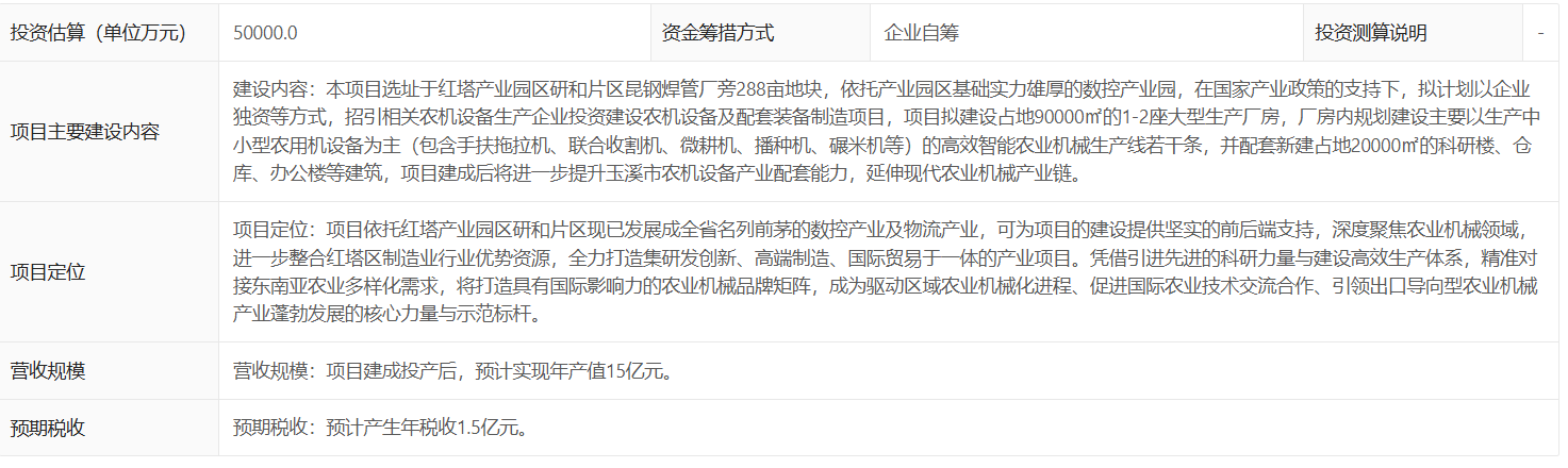玉溪市红塔产业园区农机设备及配套装备制造项目