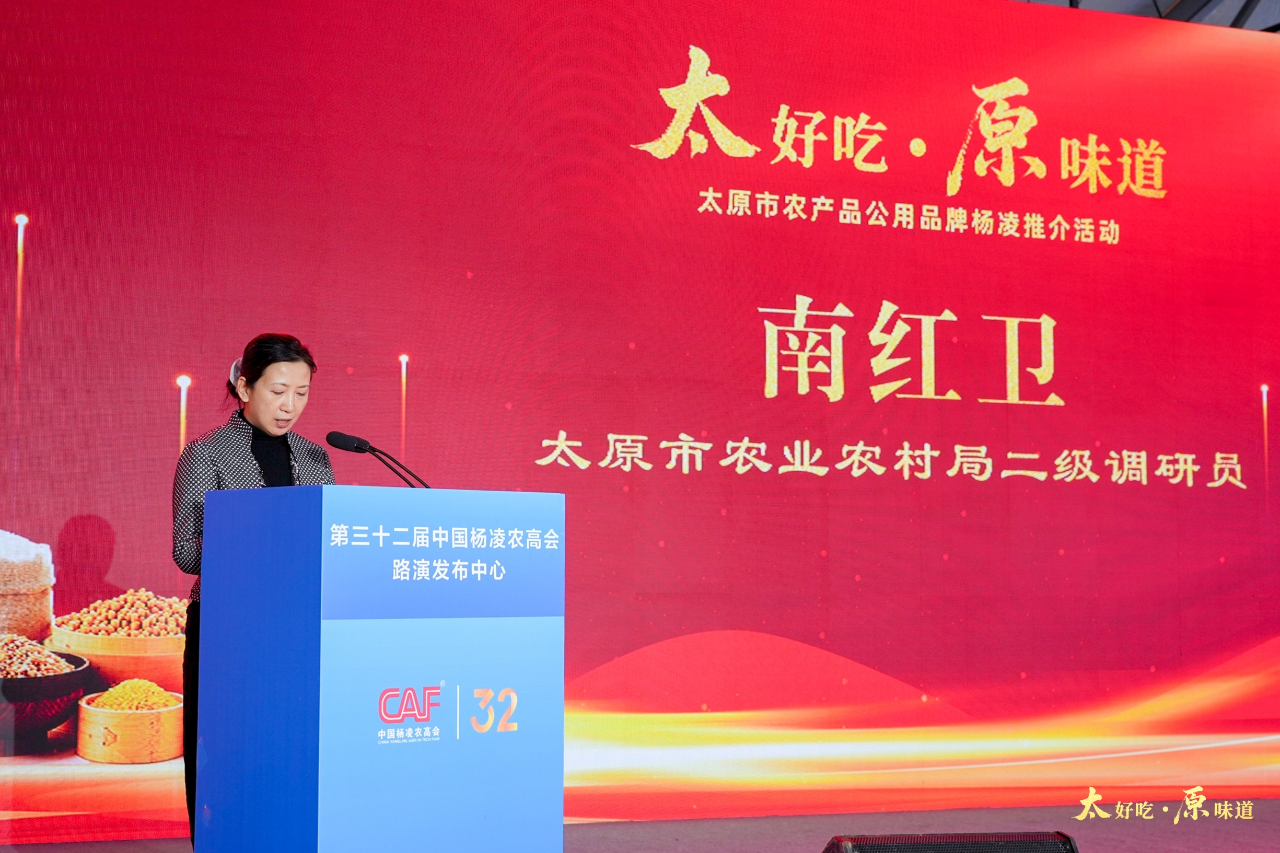 南红卫在致词中说,太原襟四塞之要冲,控五原之都邑,如今在这片土地上,设施蔬菜集中连片,畜牧养殖健康绿色,特色果品优质多样,孕育出的农产品品牌百花齐放。他表示,此次来到杨凌农高会现场,旨在积极融入国家发展战略,搭建桥梁、推介精品、深化合作,通过“强三产、壮二产、带一产”的发展思路,引领“太好吃·原味道”公用品牌走向更广阔的市场,助力太原农业向更加品牌化、标准化、数字化和可持续化的方向稳步迈进。