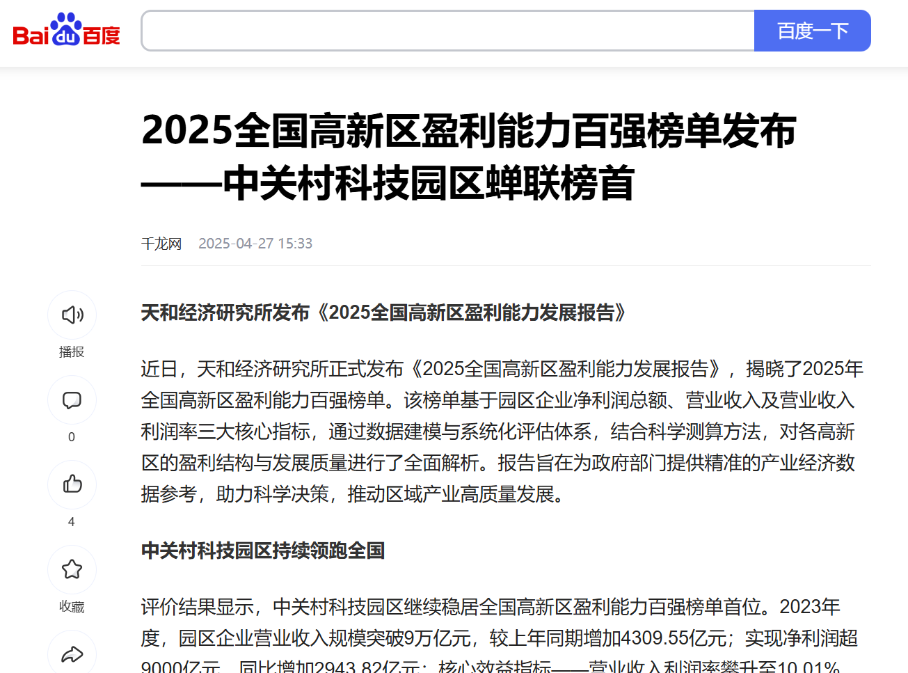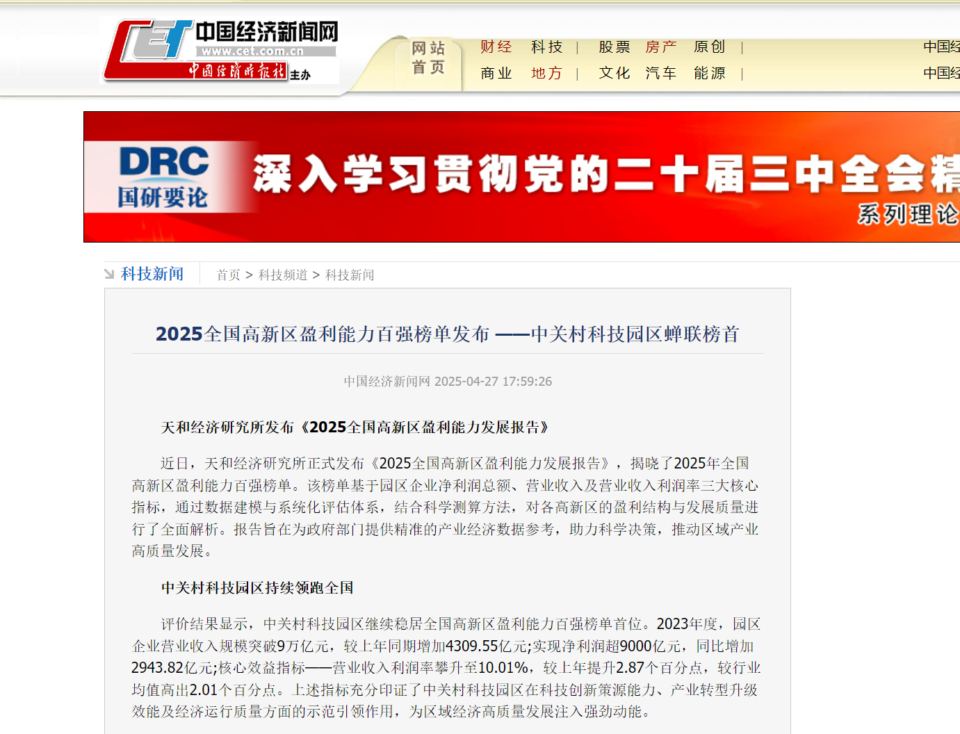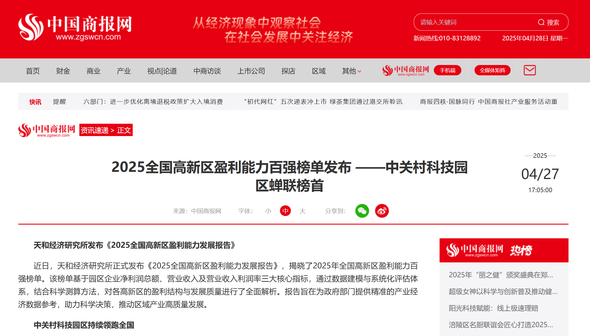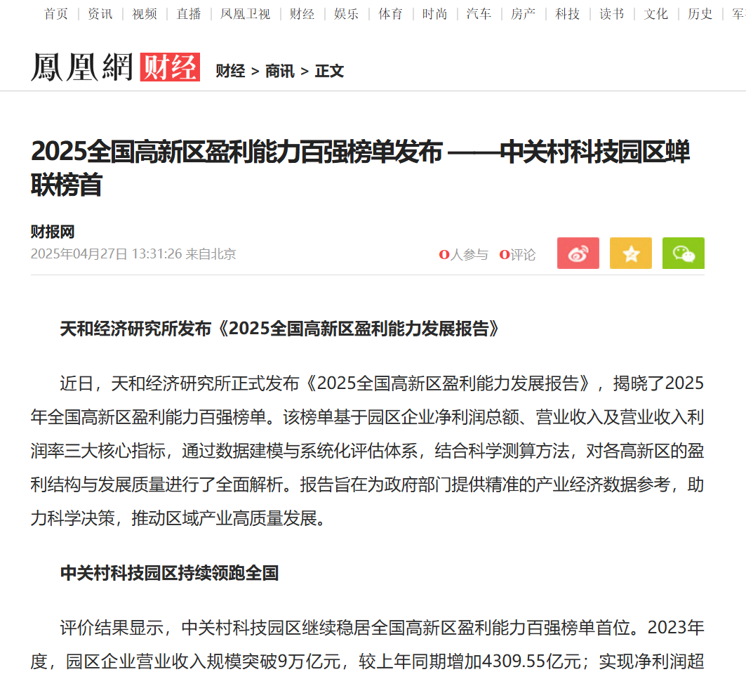 天和经济研究所发布《2025全国高新区盈利能力发展报告》