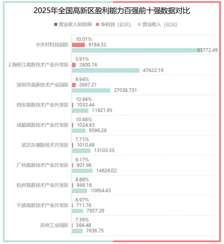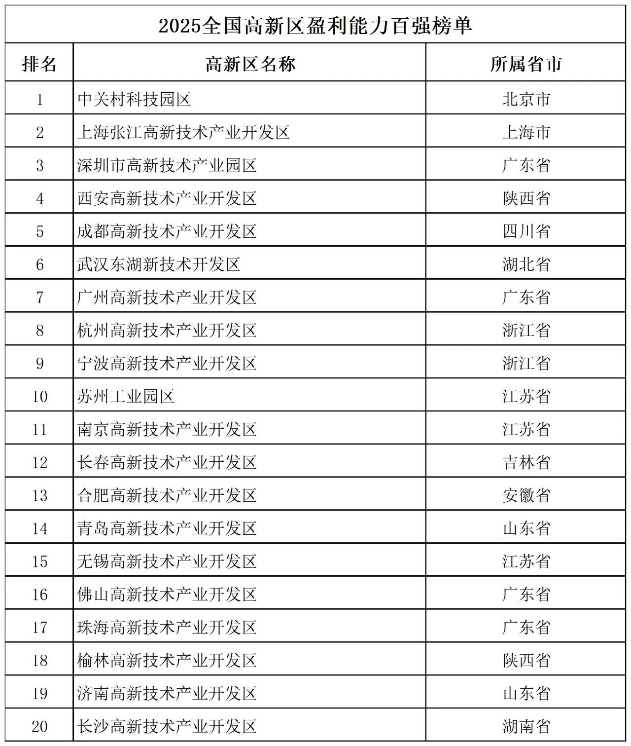 2025全国高新区盈利能力百强前十强依次为:中关村科技园区、上海张江高新技术产业开发区、深圳市高新技术产业园区、西安高新技术产业开发区、成都高新技术产业开发区、武汉东湖新技术开发区、广州高新技术产业开发区、杭州高新技术产业开发区、宁波高新技术产业开发区及苏州工业园区。值得关注的是,宁波高新技术产业开发区凭借其突出表现超越合肥高新区席位,成功跻身榜单前十强。