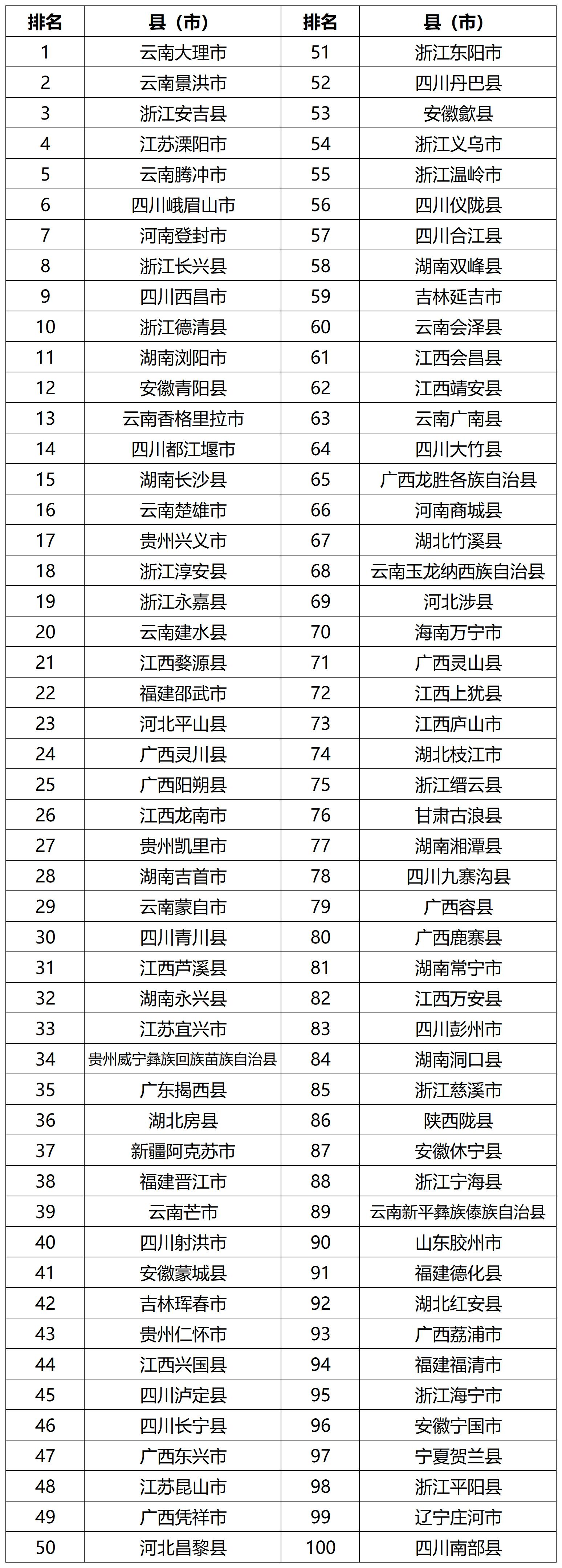表2 天和2024全国旅游百强县市