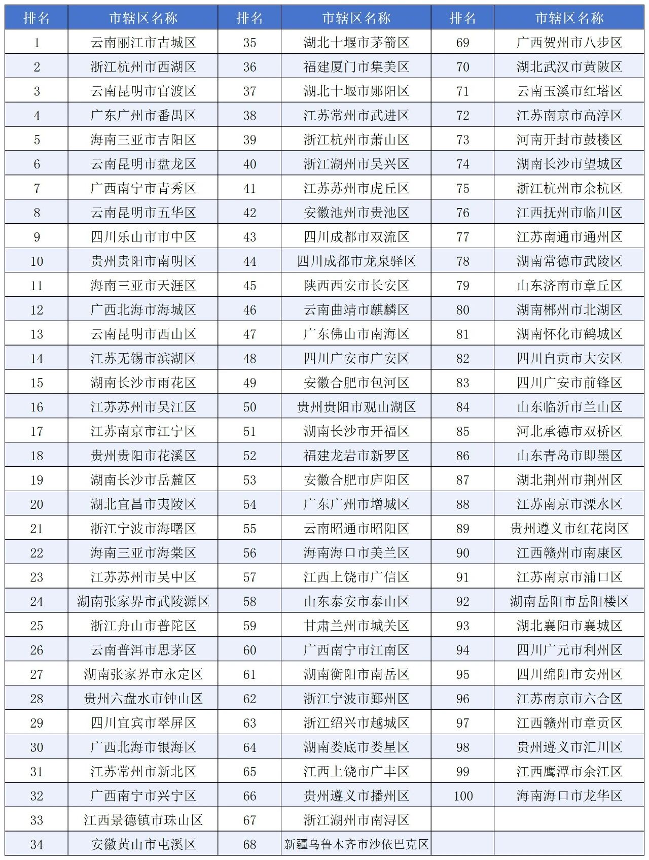 全国旅游百强县市2023年旅游综合收入2.02万亿元,占全国旅游综合收入的28.6%;人均旅游消费达1200元以上,全年接待游客人数超17亿人次,占全国游客接待总量的20%以上;可接待全球客人的高端酒店数量超1万余家,拥有A级景区数量超800家,充分展示了旅游百强县市的强劲实力和在全国旅游版图中的重要地位。从省市分布来看,全国旅游百强县市分布在全国22个省市,其中四川、浙江、云南3个省市入围县市数量位居全国前三,入围县市数量合计占全国旅游百强县市的比重接近四成。此外,江西、广西入围县市各9个,湖南入围8个县市,安徽、湖北等其他省市入围县市数量则在5个及以下,相对较少。测算结果显示,全国旅游百强区综合发展指数为79.97。位居全国旅游百强区前10名的市辖区分别为云南丽江市古城区、浙江杭州市西湖区、云南昆明市官渡区、广东广州市番禺区、海南三亚市吉阳区、云南昆明市盘龙区、广西南宁市青秀区、云南昆明市五华区、四川乐山市市中区、贵州贵阳市南明区。全国旅游百强区2023年旅游总收入达2.5万亿元,全年接待旅游人数22.8亿人次,人均旅游消费1500元以上,可接待全球客人高端酒店数量超7000家,拥有A级景区数量超1300家,不仅体现了全国旅游百强区在基础设施建设和旅游吸引力提升方面取得的显著成效,也展示了旅游百强区引领我国旅游业的高质量发展、促进地方经济增长等方面呈现出的蓬勃发展态势。从省市分布看,全国旅游百强区分布在全国19个省市,其中江苏、湖南、四川、浙江、云南等5省市入围市辖区数量位居全国前五位,入围市辖区数量合计占全国旅游百强区的比重超五成。