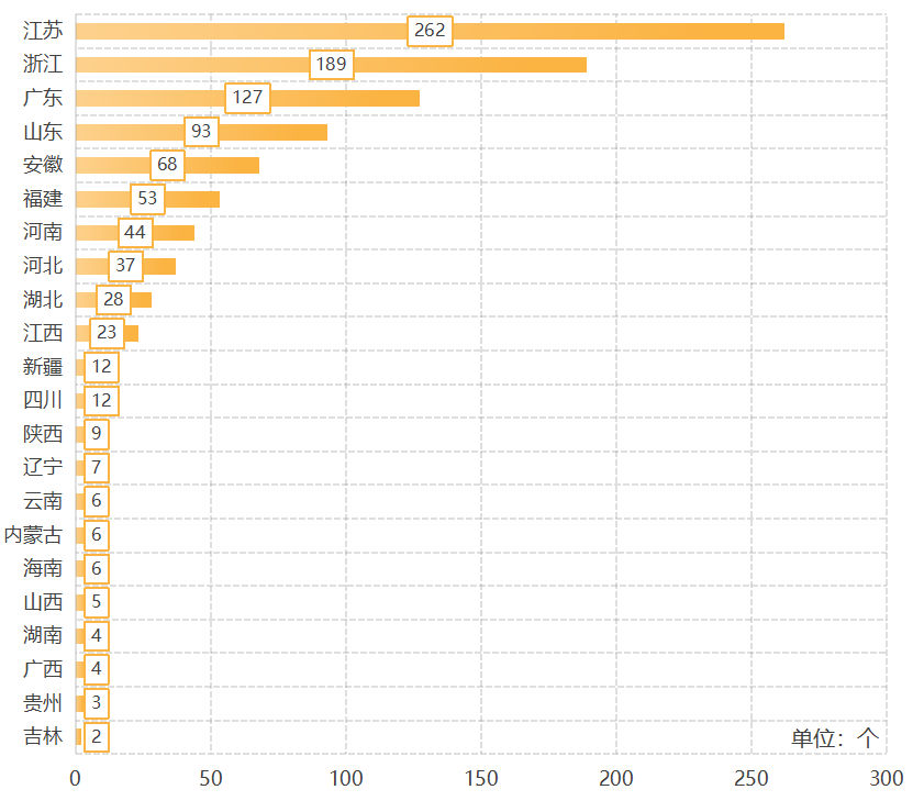 作为国家经济发展的基石,千强乡镇不仅在推动地方经济增长中扮演着关键角色,而且在促进区域均衡发展、提高居民生活水平方面也具有不可替代的作用。从省市分布看,天和2024全国千强乡镇分布在全国22个省市,其中江苏、浙江、广东3省入围乡镇数量位居全国前三,分别有262个、189个和127个,三省市入围乡镇数量合计占比接近六成。各省市中入围数量超10个但不足100个的省市有山东、安徽、福建、河南、河北、湖北、江西、新疆和四川。入围数量不足10个的省市有陕西、辽宁、云南、内蒙古、海南、山西、湖南、广西、贵州和吉林。