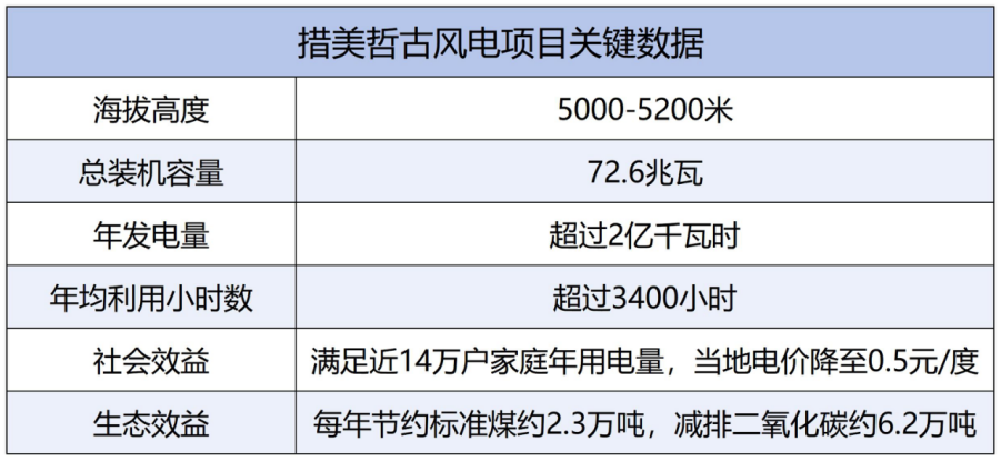 2023年10月,随着二期项目的全容量并网,措美哲古风电场总装机容量达到72.6兆瓦,年发电量预计超过2亿千瓦时,足以满足近14万个家庭一年的用电需求。更令人瞩目的是其超高的发电效率,项目全年利用小时数超过3400小时,远高于全国2246小时的平均水平。