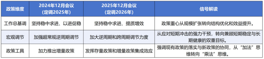 与2024年12月的政治局会议相比,本次会议在政策基调的表述上出现了几个值得关注的深刻转变。这些变化预示着中国宏观调控思路的演进,即从应对短期冲击的“应急”模式,转向追求长期可持续发展的“战略”模式。