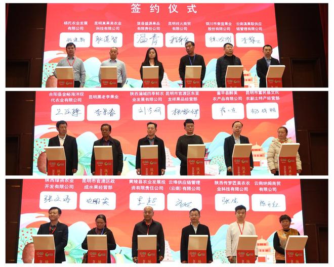 在签约环节,杨氏农业发展有限公司与昆明真果美农业科技有限公司等9组陕滇企业成功牵手,现场签署采购意向或协议。签约品类涵盖苹果、猕猴桃、蒲城酥梨、富平柿饼等多个陕西特色品类,总交易量达6730吨,总价值8460万元,为陕果深耕西南市场奠定了坚实基础。