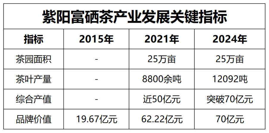 品牌价值的提升是惊人的。2015年,“紫阳富硒茶”的品牌价值仅为19.67亿元,而到了2024年,这一数字已飙升至70亿元。品牌价值的跃升,直接转化为市场的真金白银。如今,紫阳拥有茶企、茶厂400余家,开发出绿茶、红茶、白茶、黑茶等多个品类,产品销往全国并开始走向世界。小小的茶叶,真正成了带动12万茶农增收致富的“金叶子”。