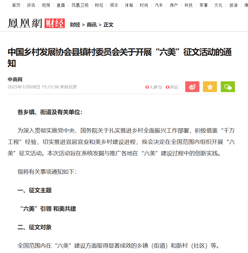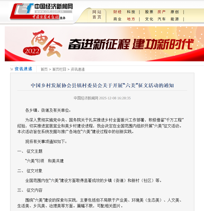 为深入贯彻实施党中央、国务院关于扎实推进乡村全面振兴工作部署,积极借鉴“千万工程”经验,切实推进宜居宜业和美乡村建设进程,我会决定在全国范围内组织开展“六美”征文活动。本次活动旨在系统发掘与推广各地在“六美”建设过程中的创新实践。