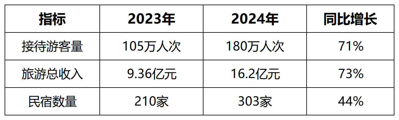 •数据见证:2024年,嘉荫接待游客达180万人次,同比增长71%;旅游收入达16.2亿元,同比增长73%。