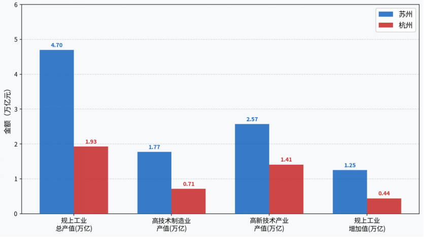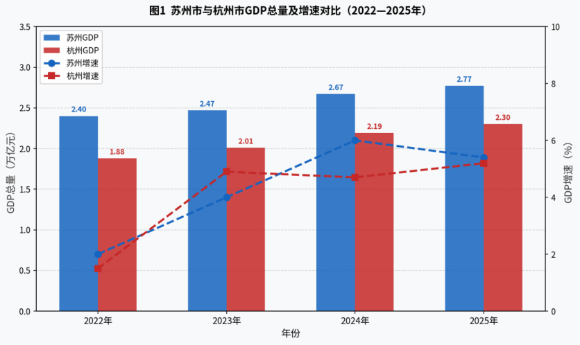 数据来源:苏州市、杭州市统计公报及两市2025年政府工作报告