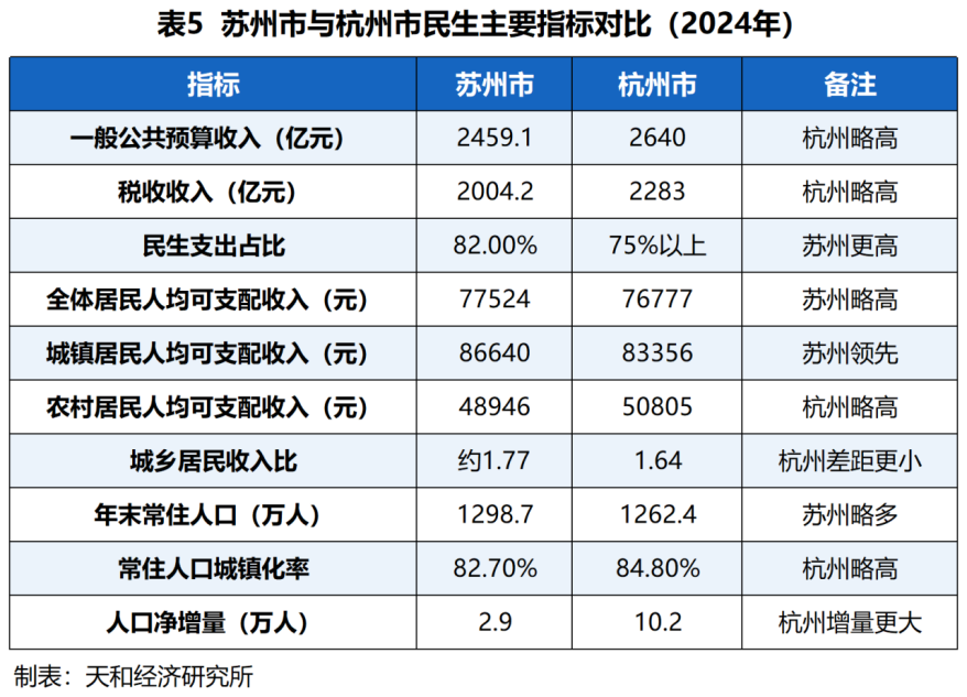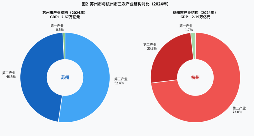 数据来源:苏州市2024年统计公报、杭州市2024年统计公报