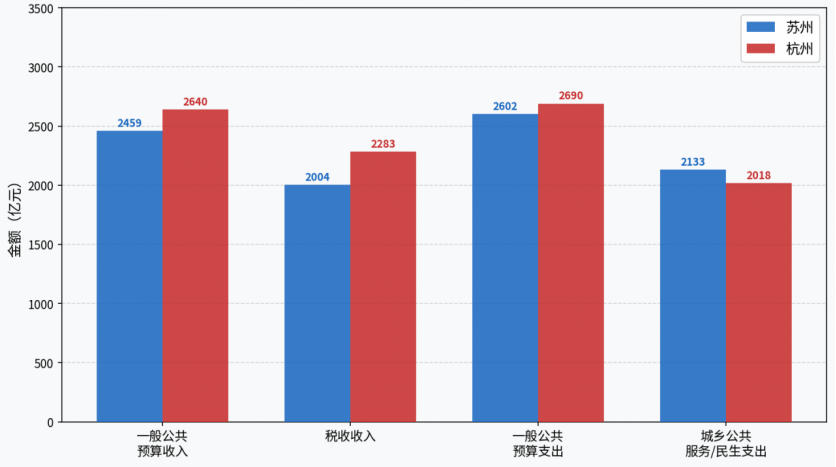 数据来源:苏州市、杭州市统计公报及两市2025年政府工作报告