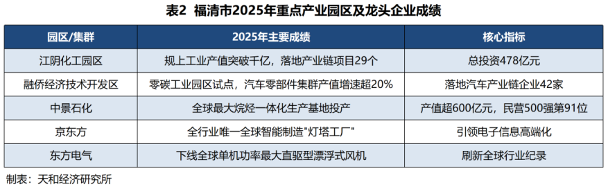 ● 双千亿园区并驾齐驱:园区是产业发展的主阵地。福清同时拥有融侨、江阴两个千亿工业园区,数量占福州市一半。江阴区规上工业总产值突破千亿,上榜“十四五”最具竞争力优势化工园区名录,落地万华化学PC项目等产业链项目29个总投资478亿元。融侨区则获评全省首批零碳工业园区试点建设园区,投产福耀全球出口基地,落地汽车产业链企业42家,汽车零部件产业集群产值增速超20%。