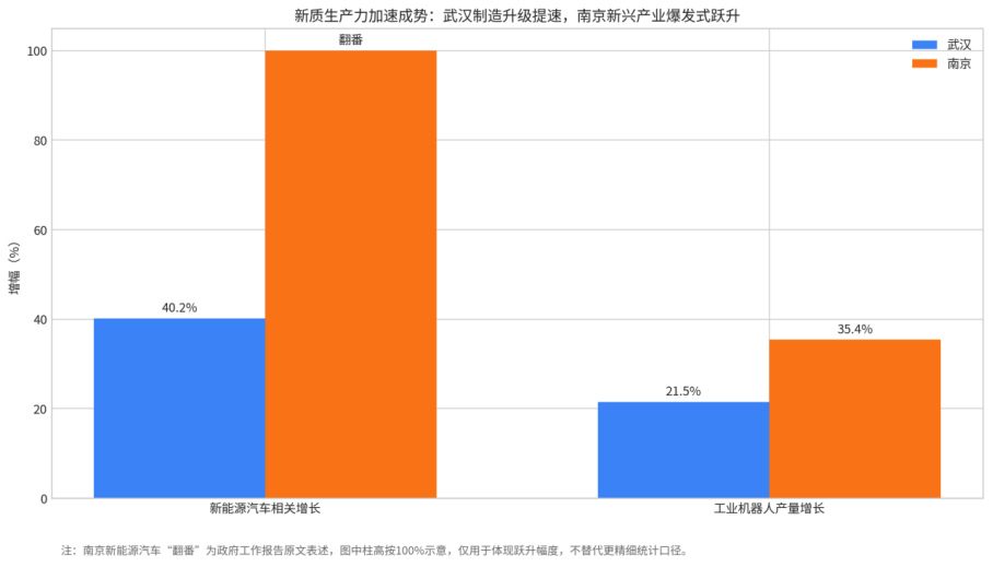 这说明,武汉2026年的治理重心更偏向于巩固增长态势、稳住大盘、扩大承载力;南京则更偏向于将高质量发展任务拆解为一系列可执行的产业、创新、投资、消费和改革清单,以系统化治理方式提升城市竞争力。前者强调“把势头做起来”,后者强调“把体系做扎实”。