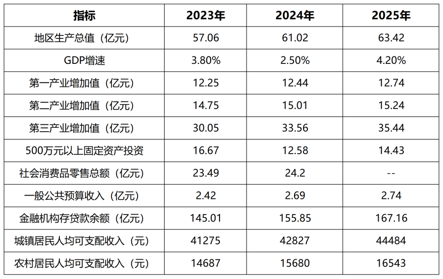 表1:三穗县2023—2025年主要指标对比