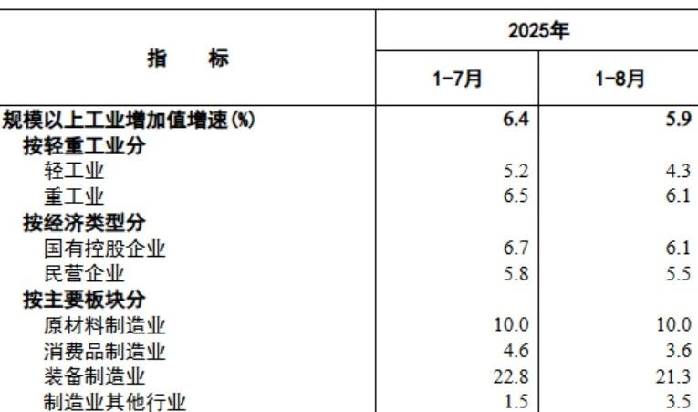 3. 2025年1-8月份,内蒙古自治区规模以上工业增加值增速5.9%