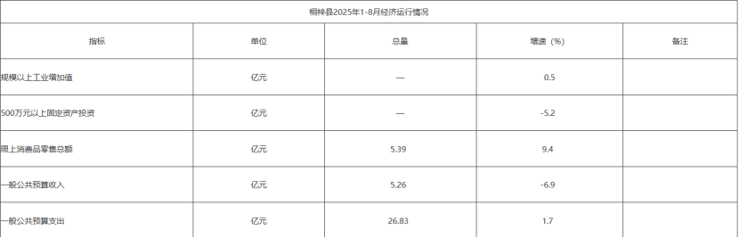 6. 2025年1-8月,桐梓县规模工业增加值增速为0.5%