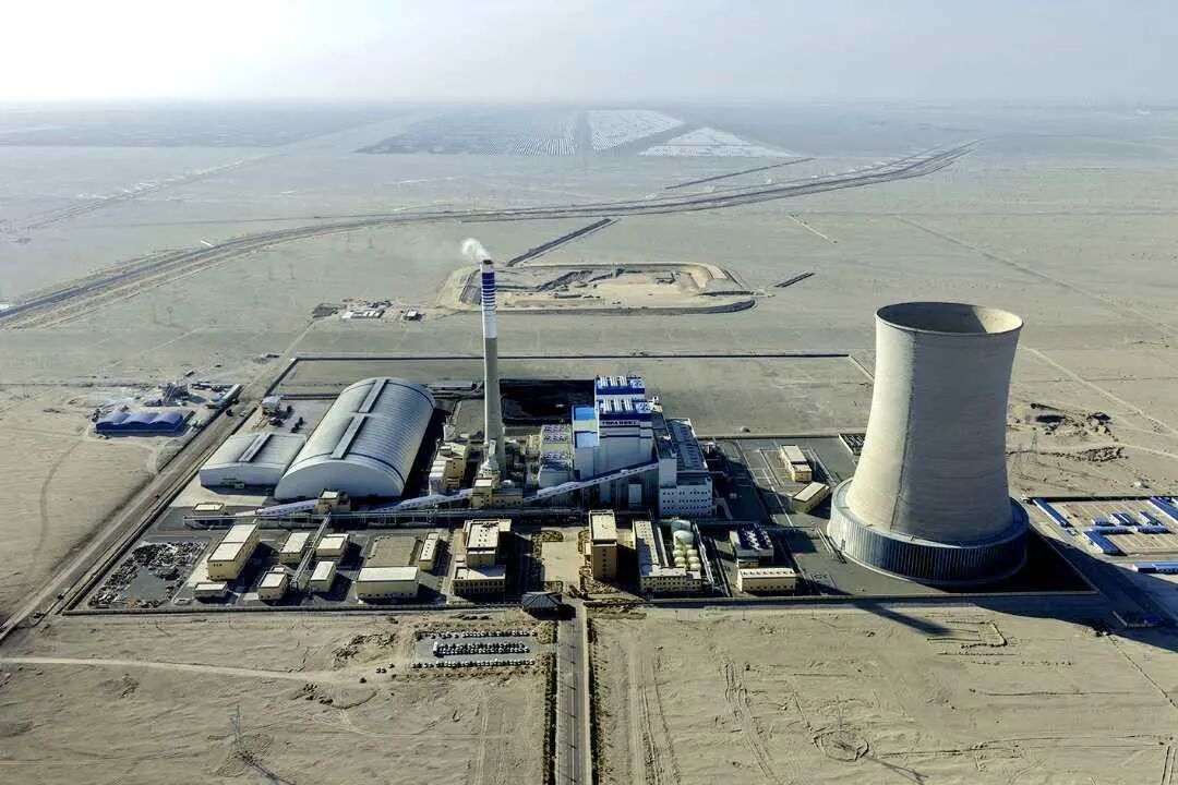 若羌2x35万千瓦热电联产项目与远处中绿电400万千瓦光伏阵列“交相辉映。