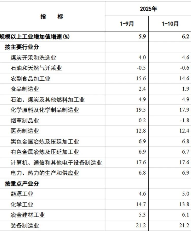 2. 2025年1—10月,内蒙古自治区规模以上工业增加值同比增长6.2%