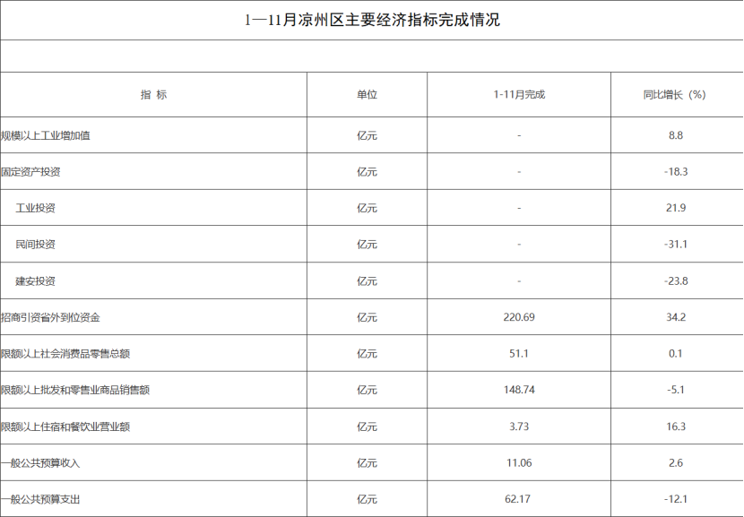 6. 2025年1—11月,凉州区规模以上工业增加值同比增长8.8%