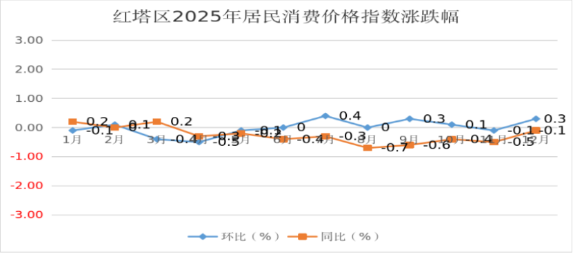 6. 2025年12月,玉溪市红塔区居民消费价格与上年同比下降0.1%,环比上升0.3%