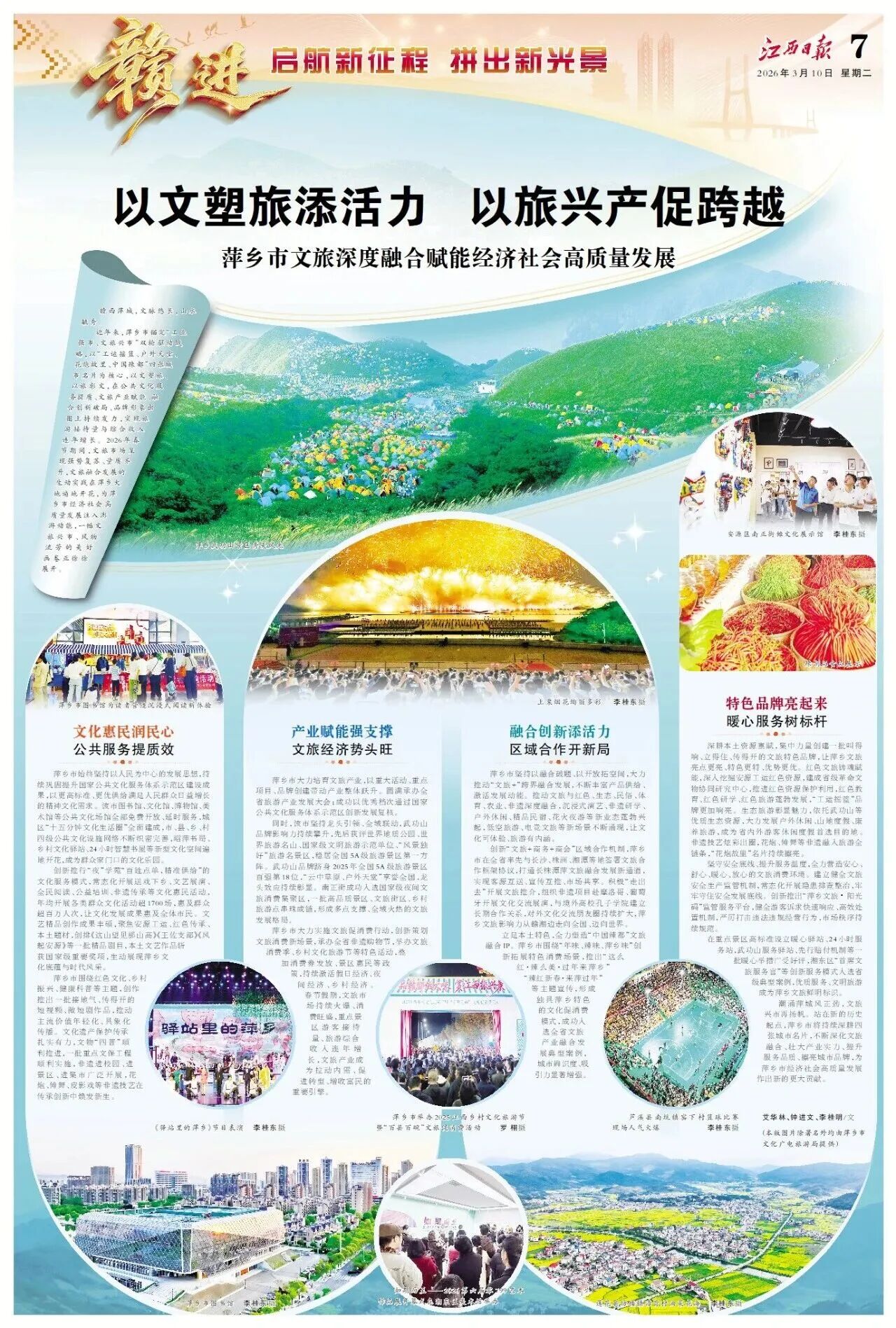 近年来,萍乡市锚定“工业强市、文旅兴市”双轮驱动战略,以“工运摇篮、户外天堂、花炮故里、中国辣都”四张城市名片为核心,以文塑旅、以旅彰文,在公共文化服务提质、文旅产业赋能、融合创新破局、品牌形象出圈上持续发力,实现旅游接待量与综合收入连年增长。2026年春节期间,文旅市场呈现强势复苏、量质齐升,文旅融合发展的生动实践在萍乡大地遍地开花,为萍乡市经济社会高质量发展注入澎湃动能,一幅文旅兴市、风物流芳的美好画卷正徐徐展开。