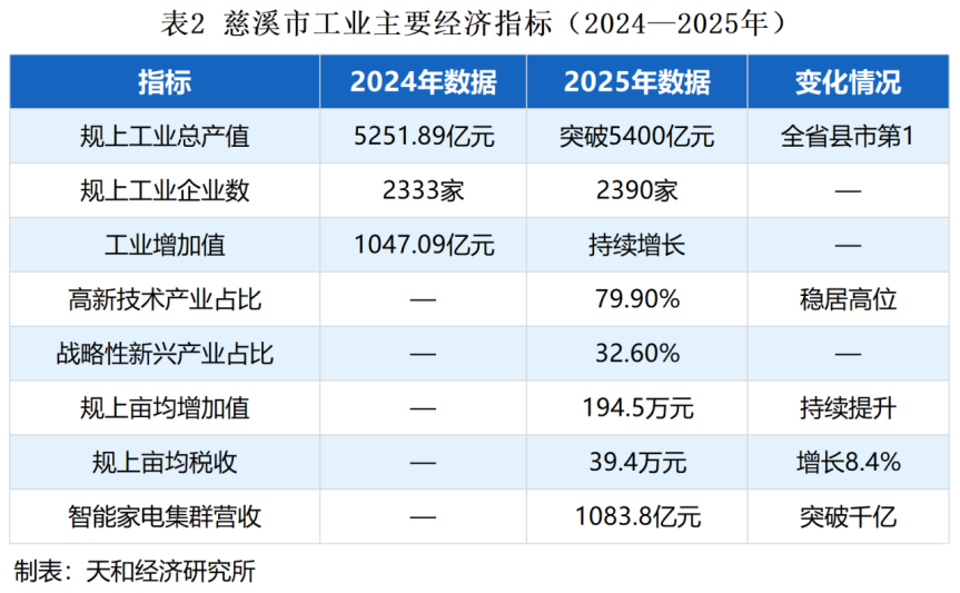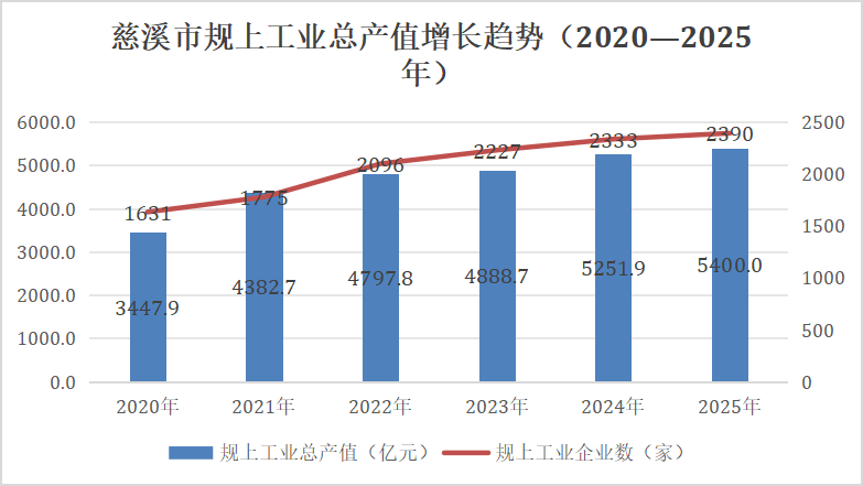 数据是枯燥的,但数据背后的发展成就是生动而震撼的。从2020年的2134.6亿元到2025年的3013.9亿元,从规上工业产值突破5400亿到高新技术企业数量翻番,从城乡收入倍差1.48到第11次蝉联最具幸福感城市……这一组组亮眼的数据,勾勒出慈溪市在“十四五”期间高质量发展的壮丽轨迹。