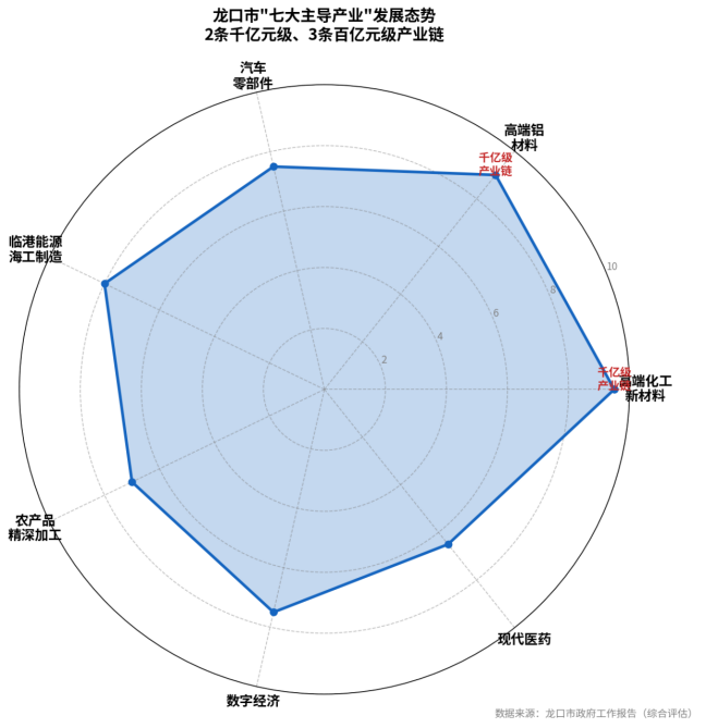 龙口市已经形成了涵盖高端化工新材料、高端铝材料、汽车零部件、临港能源及海工制造、农产品精深加工及高端制品、数字经济、现代医药的“七大主导产业”体系。目前,全市链上企业近500家,其中民营企业占比高达97%,总产值超2000亿元,已形成2条千亿元级、3条百亿元级产业链。这种以民营经济为主体的产业生态,展现了龙口市民营经济的强大活力。