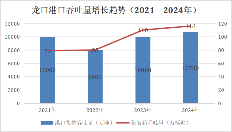 图5:龙口港口吞吐量增长趋势(2021—2024年)