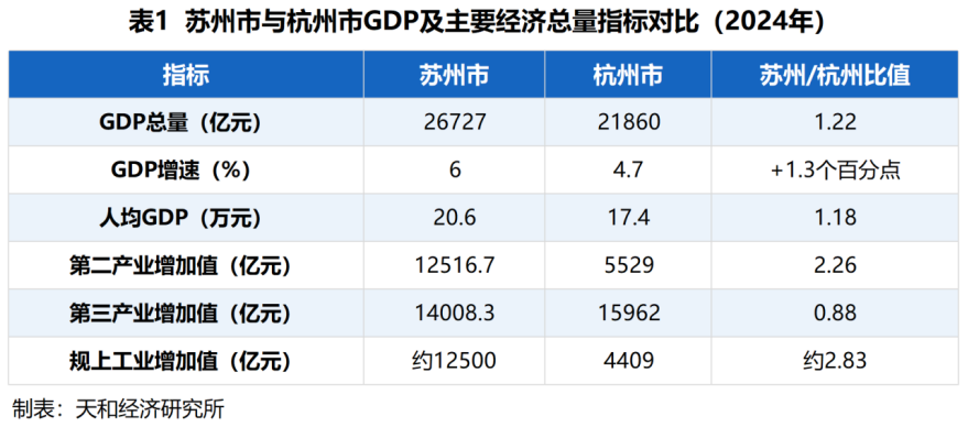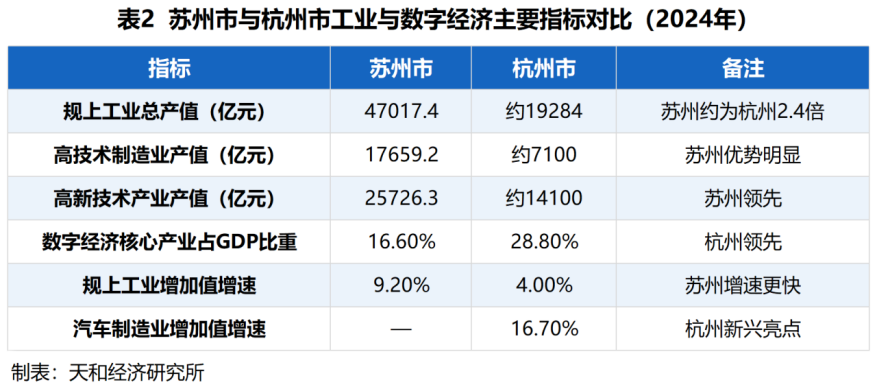 数据来源:苏州市2024年统计公报、杭州市2024年统计公报