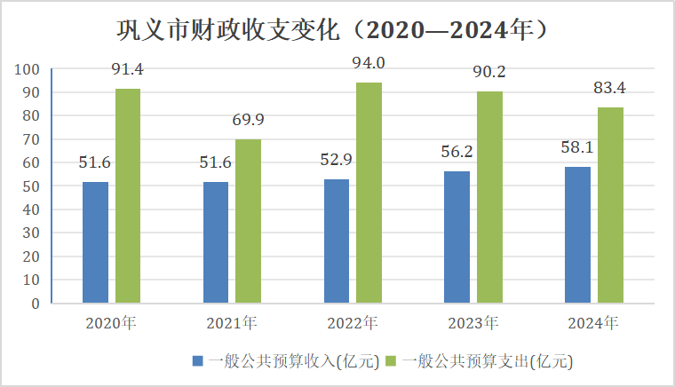 在经济总量稳步扩张的同时,巩义市的财政实力也得到了进一步夯实。2024年,全市完成一般公共预算收入58.1亿元,比上年增长3.3%。其中,税收收入31.5亿元,占一般公共预算收入的比重为54.3%;市本级收入27.3亿元,实现了11.9%的两位数增长。充裕的财政收入为巩义市推进重大项目建设、改善民生福祉提供了坚实的资金保障。