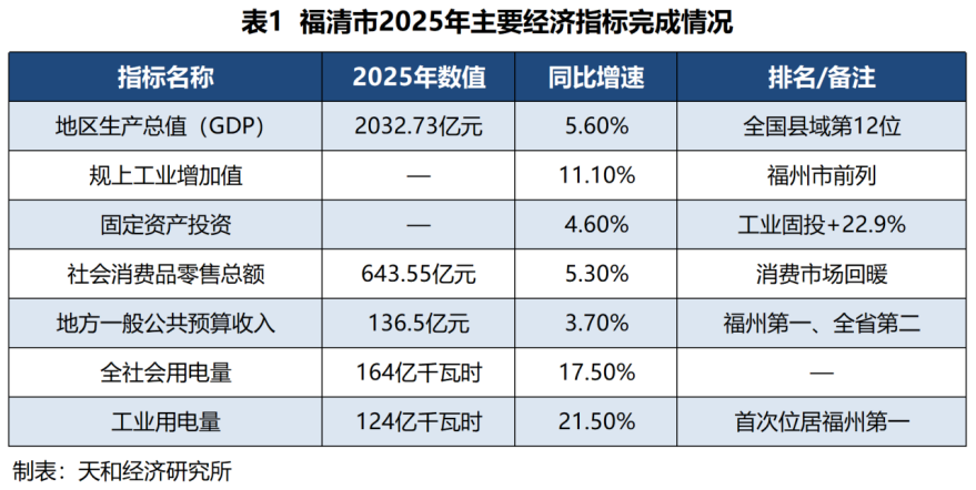 2025年,福清市在“十四五”收官之年交出了一份亮眼的“终极成绩单”。全市地区生产总值(GDP)突破2000亿元大关,达到2032.73亿元,同比增长5.6%;规上工业总产值时隔15年重回福州第一;全社会用电量、工业用电量分别达164亿千瓦时、124亿千瓦时,工业用电量首次位居福州第一。本报告从经济总量、产业结构、创新动能、开放格局、城乡建设及民生福祉等六个维度,深度剖析福清市高质量发展的卓越成绩与内在逻辑,为决策层提供翔实的数据支撑与战略参考。