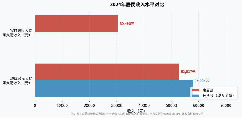 南昌县2024年城镇居民人均可支配收入为52917元,农村居民人均可支配收入为30490元。虽然在绝对值上与长沙县存在一定差距,但南昌县的居民收入增长和经济增长基本同步,且农村居民收入增速快于城镇居民,城乡收入差距正在逐步缩小。