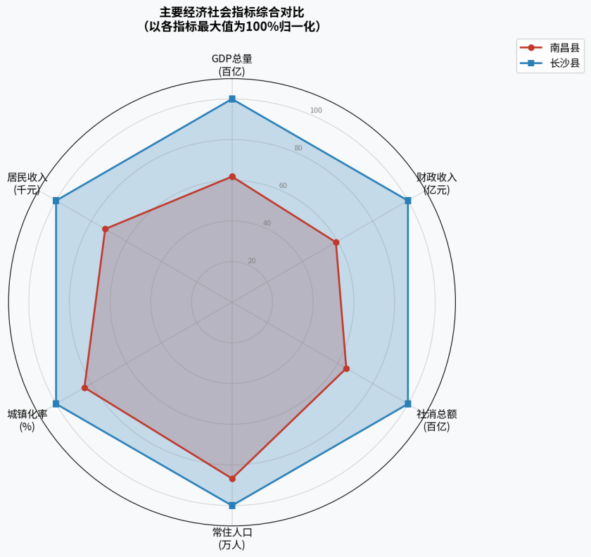 通过对南昌县与长沙县2024年各项经济社会指标的深度对比,我们可以得出以下结论: