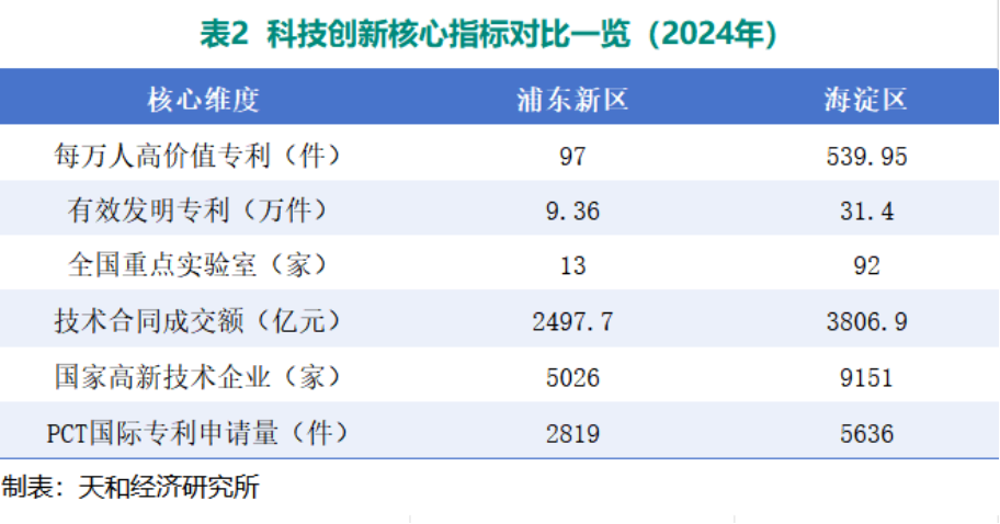 浦东新区在创新领域同样成绩斐然,但与海淀区相比,在基础研究和源头创新指标上仍有追赶空间。2024年,浦东新区每万人高价值发明专利拥有量为97件;新认定高新技术企业1521家,有效期内高新技术企业5026家;新增科技“小巨人”企业和“小巨人”培育企业28家,累计753家。浦东新区的创新优势更多体现在产业创新和科技成果转化方面。