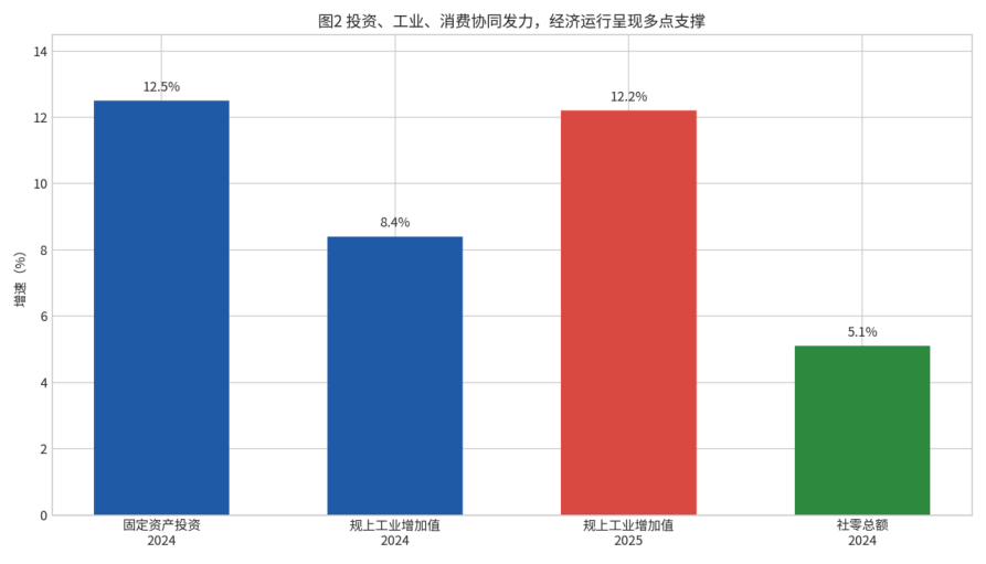 如果说总量攀升体现的是经济体量,那么增速抬升则更能说明这座城市正在形成新的动能结构。