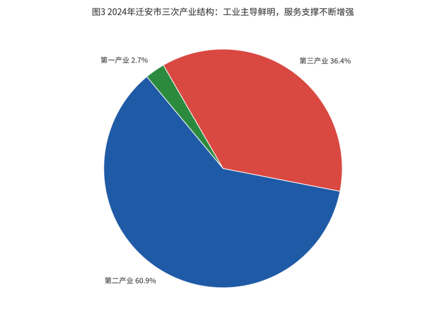 从结构层面看,2024年迁安三次产业结构为2.7:60.9:36.4,第二产业增加值达到819.3亿元,第三产业增加值达到489.0亿元。这个结构说明迁安依旧是一座工业主导型城市,但也体现出服务业支撑能力正在增强。尤其是在消费、物流、文体旅融合、县域商业体系建设等方面,迁安已经不再只是“生产型城市”,而是在向“生产+服务+生活”综合型县域强市演进。