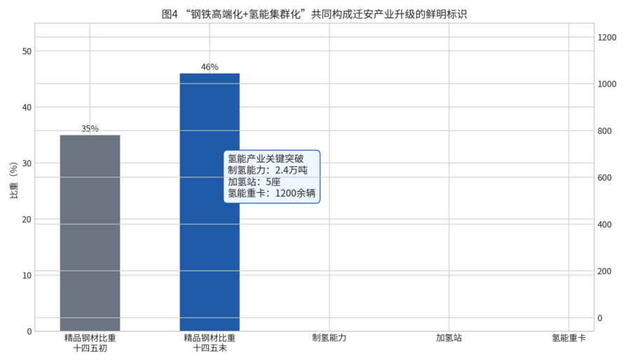 首先,传统优势产业不是被动收缩,而是在向高端化、材料级、服务型方向升级。政府工作报告显示,“十四五”期间迁安实施钢铁产业技改项目366项,精品钢材比重由35%提高到46%;2024年全市精品钢材比重提高至45%,2026年工作安排则明确提出继续提升至47%。这组数据说明迁安的钢铁产业转型并非停留在环保达标和设备更新层面,而是在产品结构、质量标准、应用领域和服务能力上同步推进。换言之,迁安要做的不是“更多的钢”,而是“更值钱、更有技术门槛、更能嵌入高端制造链条的钢”。