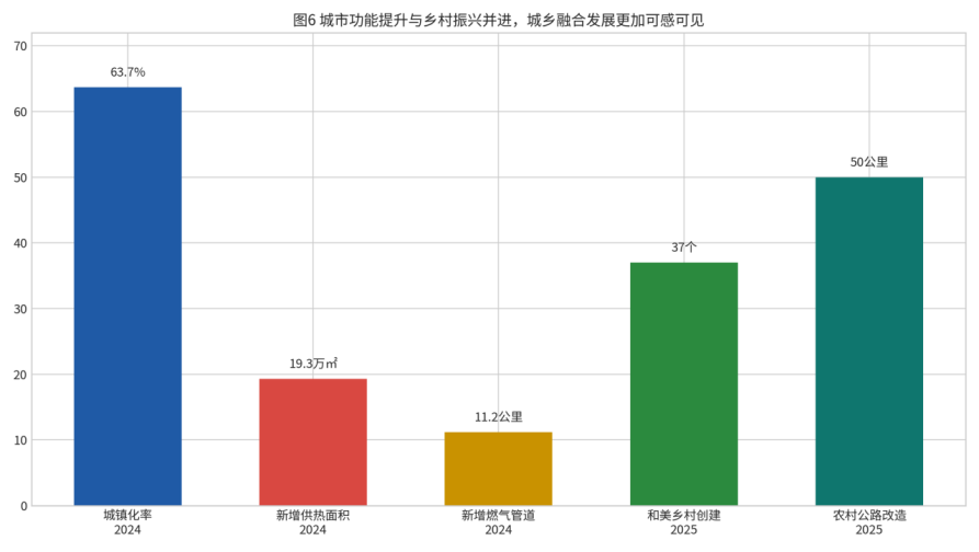 从城市功能看,2024年迁安扎实推进排水管网提升改造等25个重点城建项目,新增供热面积19.3万平方米,新增城镇燃气管道11.2公里,筹建保障性住房144套,新建社区电动自行车充电接口1.46万个,兴安大街综合改造入选全省城市更新典型范例。这些项目看似分散,实际上共同指向城市宜居性与便利性的系统提升。对居民而言,供热、燃气、保障房、充电设施和道路更新都属于“能感知、可触摸”的城市品质;对城市竞争力而言,这些基础设施改善则意味着更强的人口承载能力和更好的营商环境。