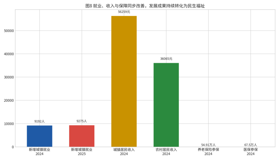 首先,就业保持稳定且质量较好。2024年,迁安新增城镇就业9192人;2025年,又新增城镇就业9275人。从“十四五”周期看,累计新增城镇就业达到5.23万人。对一座常住人口约78万人的县域城市而言,这一就业增量并不小,说明迁安在产业稳定、企业扩张、公共服务和劳动力吸纳方面都保持了较强能力。尤其是在外部环境复杂、中小企业普遍承压的背景下,能连续保持较高新增就业规模,本身就是城市运行稳健的重要信号。