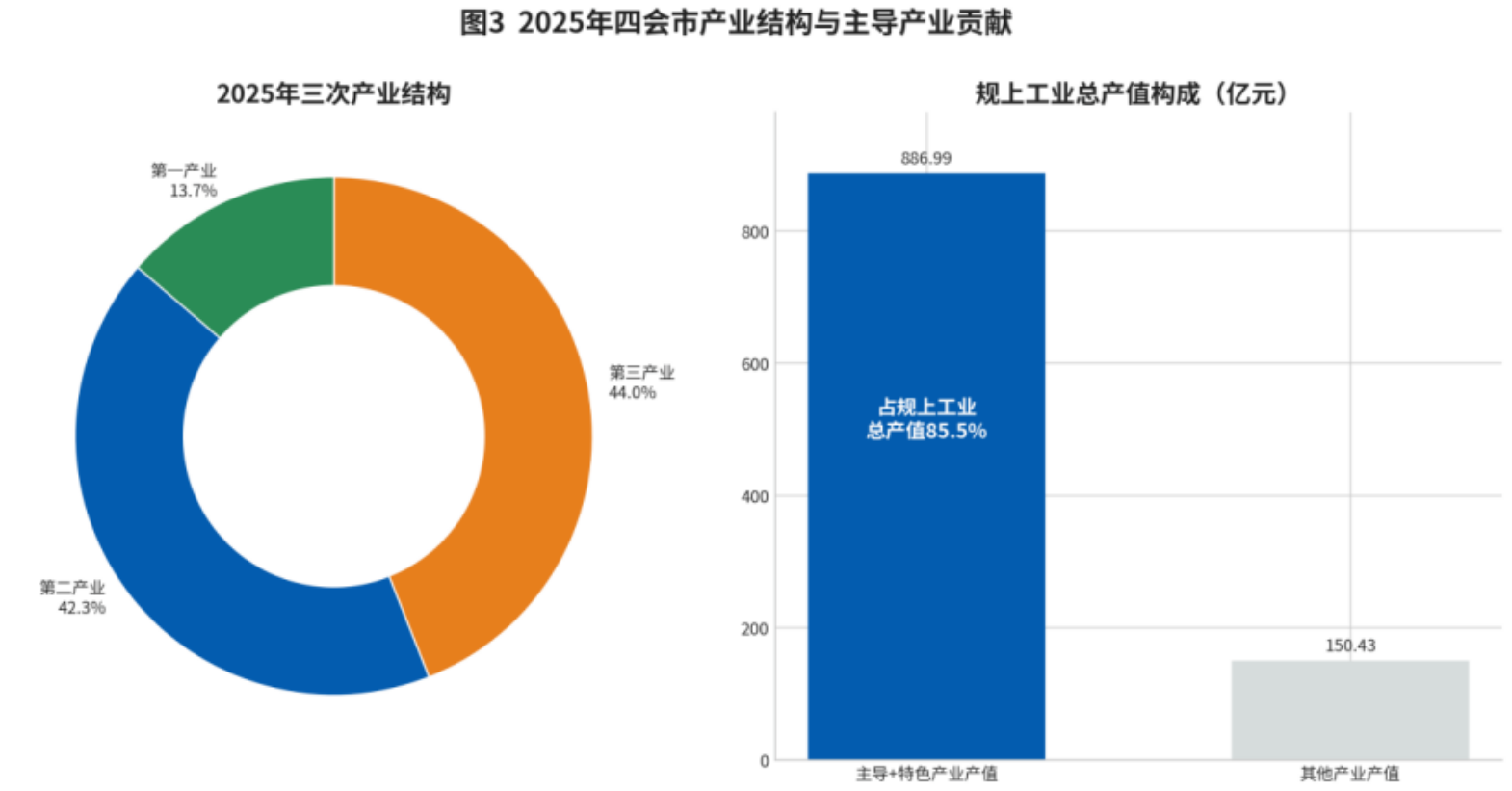 从产业结构看,2025年四会三次产业结构调整为13.7:42.3:44.0。与2024年的9.3:51.8:38.9相比,服务业占比明显上升,说明随着统计口径变化和城市功能增强,四会已逐渐呈现“工业强、服务进、农业稳”的复合结构。但这并不意味着制造业弱化,相反,在服务业占比上升的同时,规上工业总产值仍然破千亿,反而说明四会已经初步具备制造业规模支撑与现代服务业功能承接并重的发展形态。这样的县域经济更有韧性,也更有后劲。