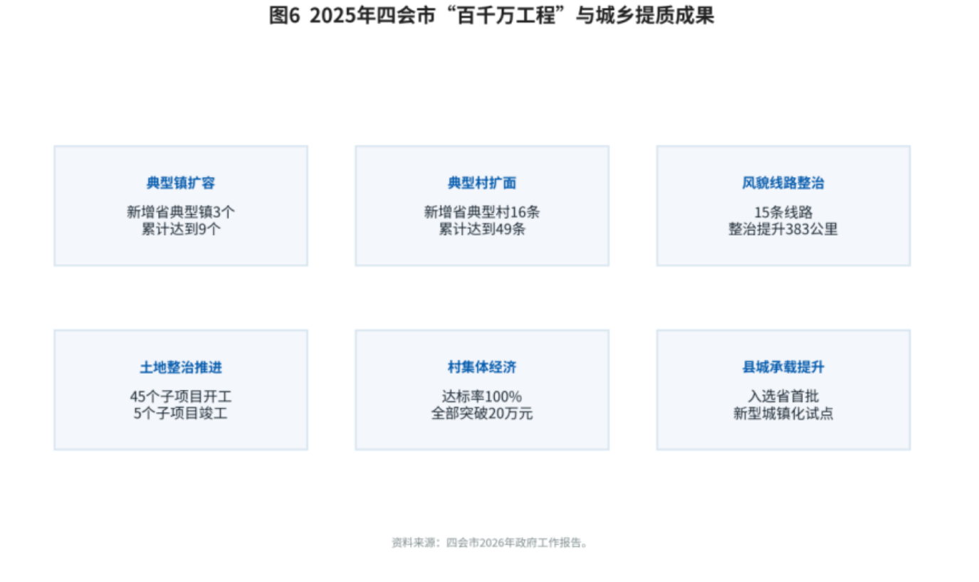 2025年,会新增省典型镇3个、省典型村16条;“十四五”期间累计培育省典型镇9个、省典型村49条,村级集体经济组织年经营性收入全部突破20万元。这表明四会推进“百县千镇万村高质量发展工程”并非停留在示范层面,而是在通过镇村体系化建设,把县域发展的空间支撑做得更厚。