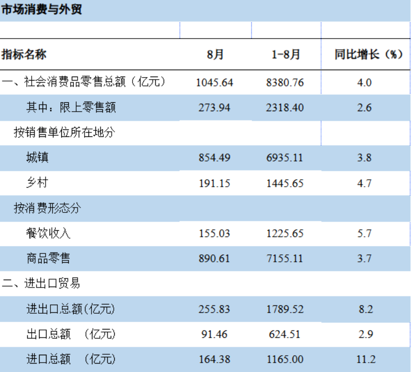 1. 2025年1-8月,云南省社会消费品零售总额同比增长4.0%