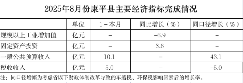 6. 2025年1-8月,康平县一般公共预算收入同口径增长43.1%