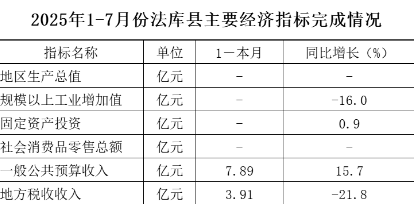 7. 2025年1-7月,法库县一般公共预算收入同比增长15.7%