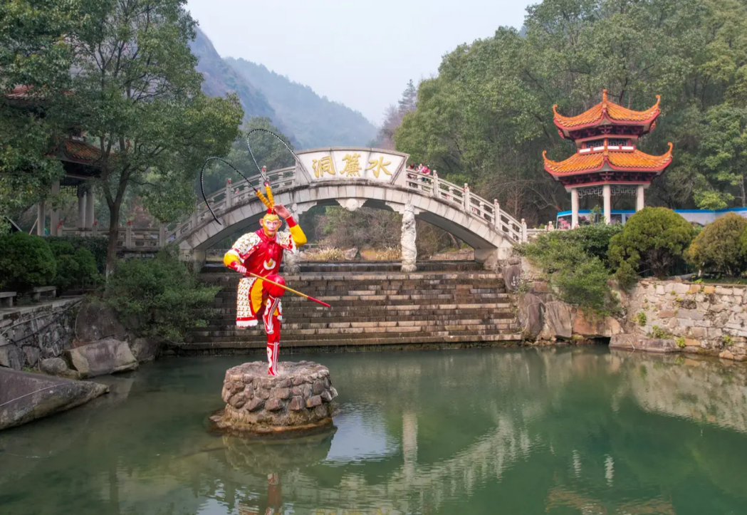 相传是《西游记》水帘洞的原型之一,飞瀑如练,泻入下方水潭,景色奇秀。