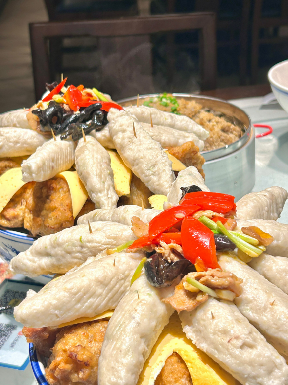 衡阳地区的传统宴席头菜,用料丰富,通常有鱼丸、蛋饺、肉丸等层层堆叠,寓意团圆美满。